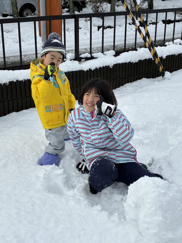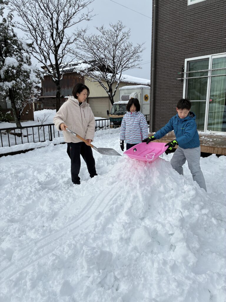 遠出の準備や移動の必要もなく、防寒着を着て外に出るだけで雪遊びが始まります。