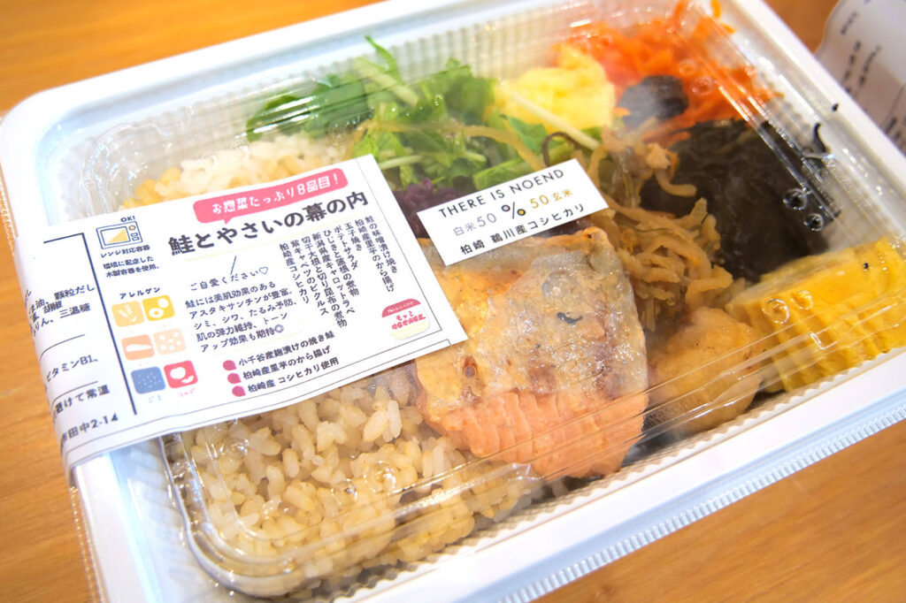 柏崎市に拠点を構える「THERE IS NOEND(ゼアーズノーエンド)」は、柏崎生まれ柏崎育ちの野菜ソムリエによって立ち上げられた地産地消の弁当屋です。地元JA直売所「愛菜館」にオンリーワンの存在として、地産地消率をラベルで見える化し、規格外野菜の活用でフードロス削減にも取り組むなど、「まちと未来をつなぐ“食”」を大切にしています。