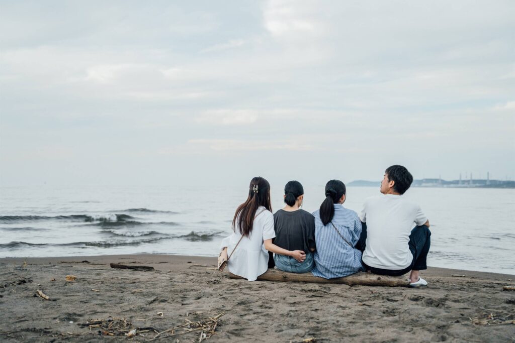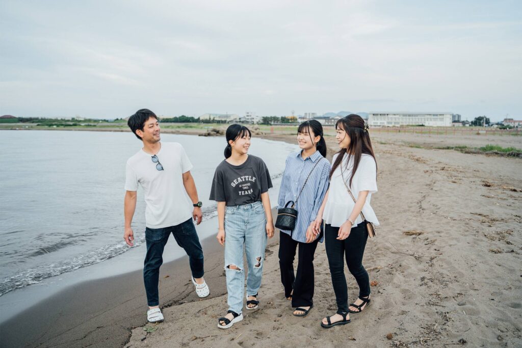 家族で海沿いを歩きながら、これからの家族の姿を思い浮かべる。