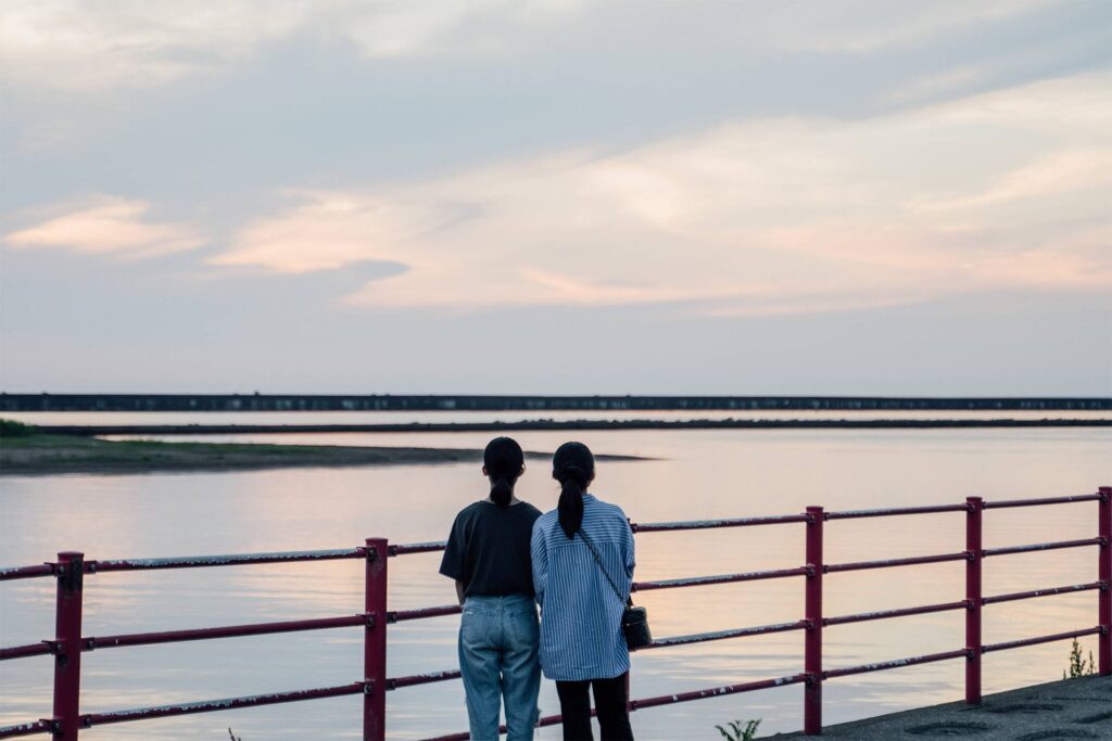 子どもたちに、柏崎のどこが好きか尋ねると『夕陽が沈む海が好き』だと娘の葉月さんと咲月さんは口を揃えて言った。家族揃って見たこの景色をいつまでも忘れることはなさそうだ。