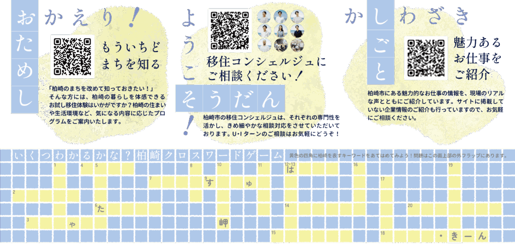 家族やご友人と一緒に、柏崎にまつわるクロスワードゲームに挑戦してみませんか?知っているようで知らなかった柏崎のことを、新しく知れるかもしれません。