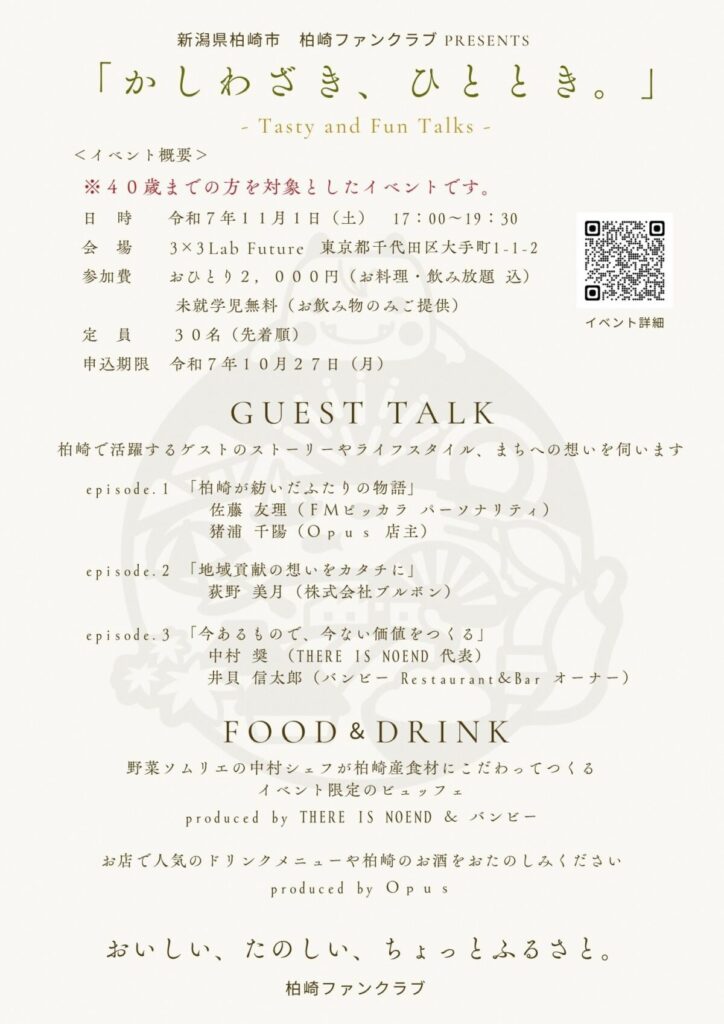 2025年11月1日(土)に東京・大手町で柏崎ファンクラブpresents「かしわざき、ひととき。」を開催しました!